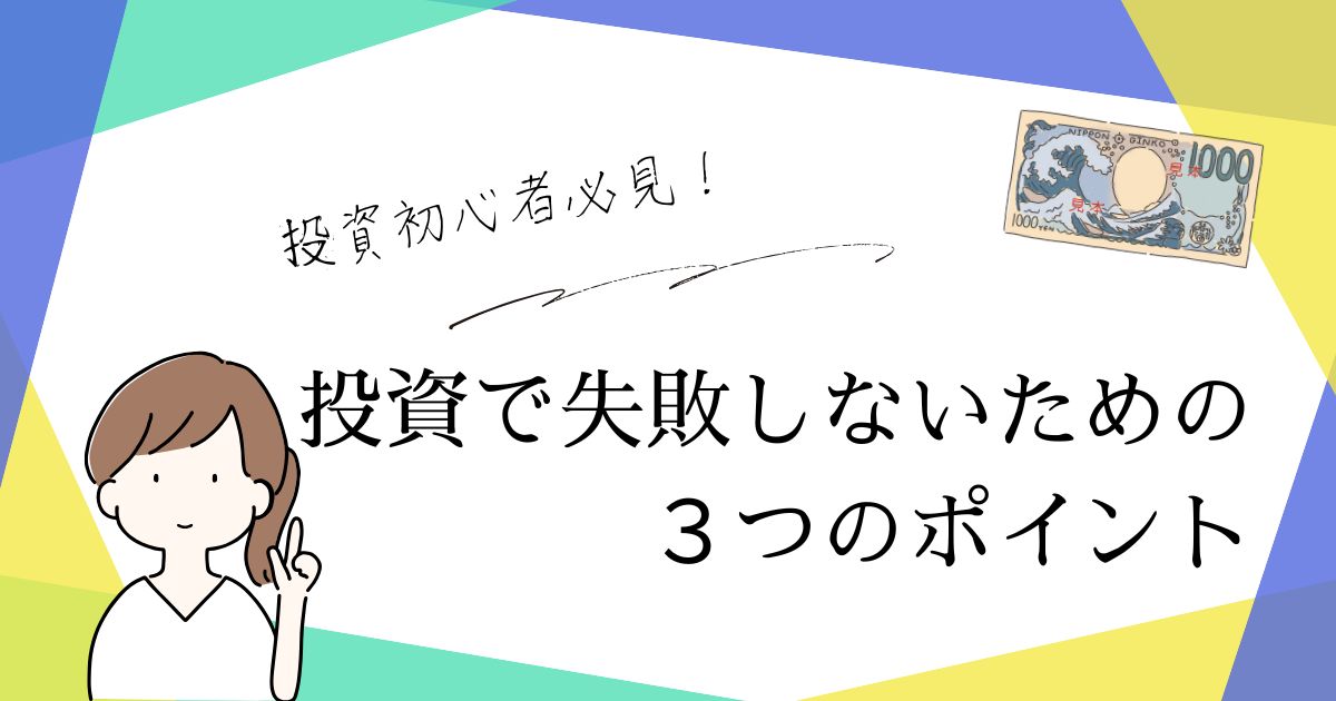 この3つを守るだけで、投資の大失敗を避けられる確率はグッと高まります✨