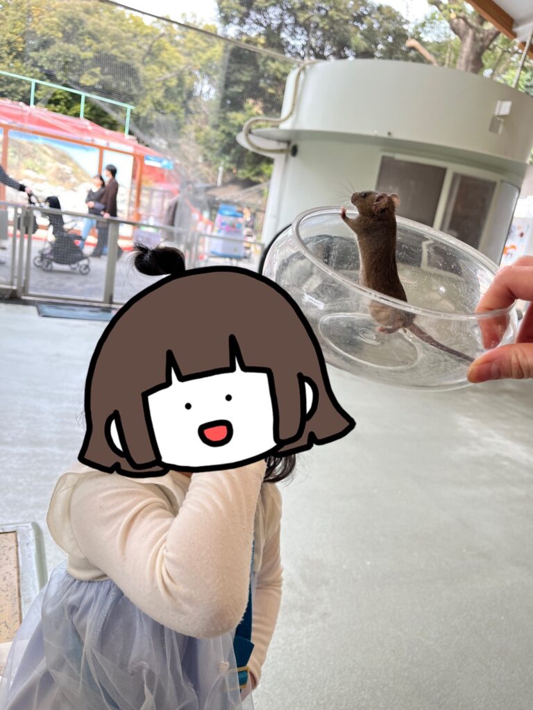 ハツカネズミは1席に1匹ではなく、約5席で1匹なので、ふれあい時間は少なかったのは残念でした🥹